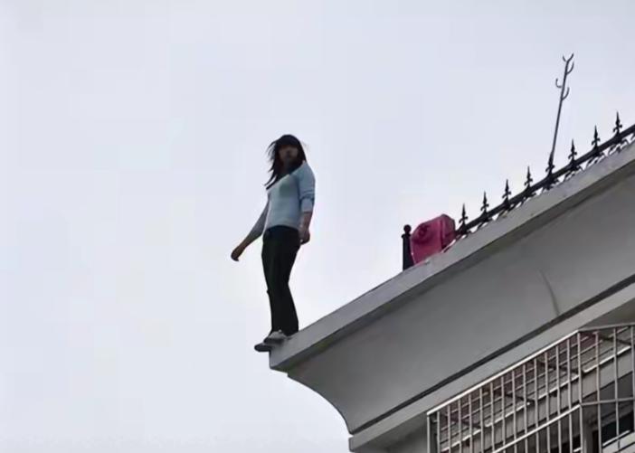 争吵吵到最凶的时候,黄小姐猛地冲向主卧的窗户,那里有个没封起来的小平台,她一下就翻了出去,站在了那个随时可能掉下去的危险边缘。