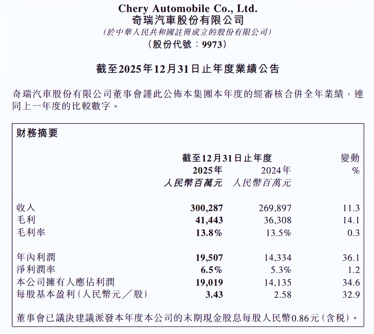 奇瑞属于“墙内开花墙外香”,被低估得有点狠。2025年净利率6.5%,远高于同行,而且出口占了一半多。到欧洲、俄罗斯、中东、南美四面开花。海外卖一台车比国内多赚5到8个百分点。董事长尹同跃说过“今年不客气了”,结果人家真的把“利润全在外面”做成了真章。