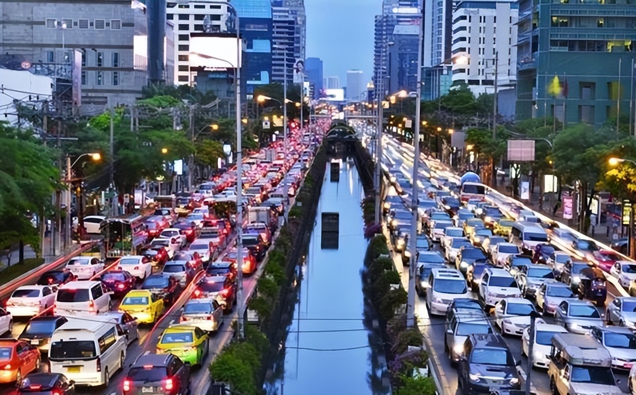曼谷有个外号,叫"世界上最大的露天停车场"。不是开玩笑。近900万人挤在这座城市里,街上趴着将近300万辆汽车。平均三个人就有一辆。赶上下雨天的晚高峰,堵两三个小时,曼谷人眼皮都不抬——早就麻了。