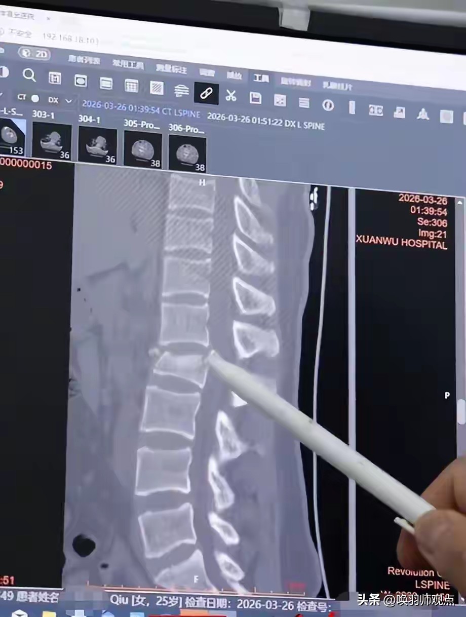 首都医科大学宣武医院骨科主任医师王居勇接诊后,表情凝重:“她才25岁,正是人生最好的年纪。如果不紧急手术,瘫痪几乎不可避免。”