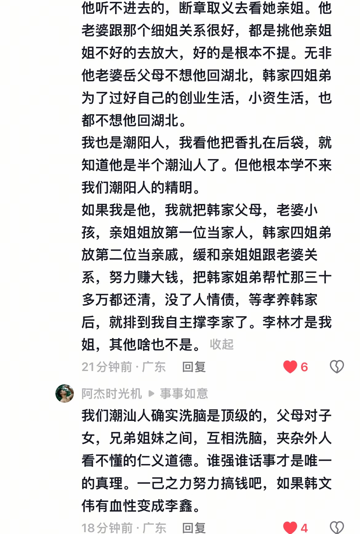这位网友还说他就是广东潮汕人,而且他还列举了潮汕人无论是父母还是兄弟姐妹之间是怎么相处的,不知道是不是这样!