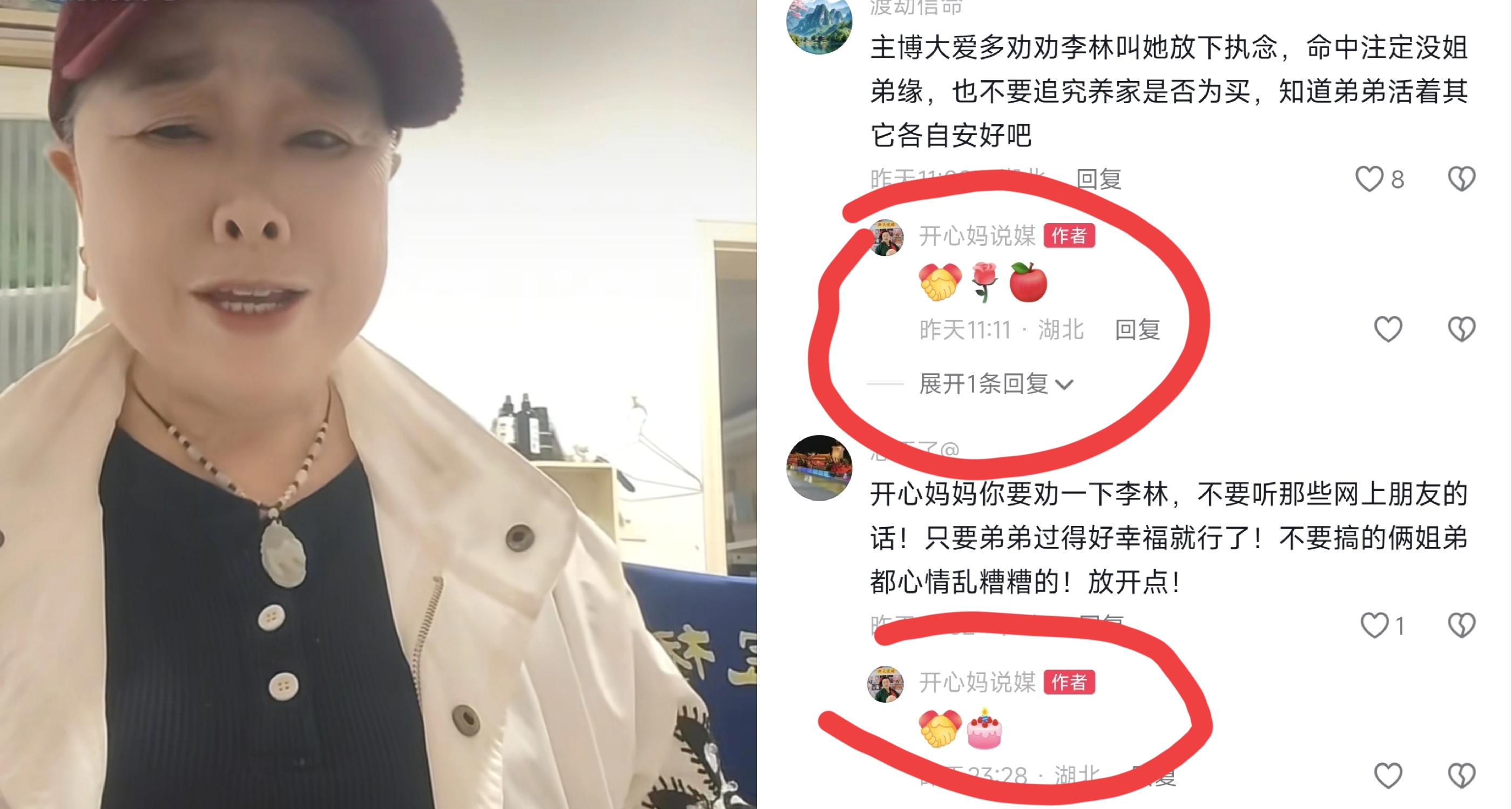 1句话刷屏开心妈妈留言区因为李鑫姐姐李林账号已经停更好几天了,不发视频也不直播,很多人担心李林,所以有人跑到李林曾经的养母开心妈妈账号留言区留言了