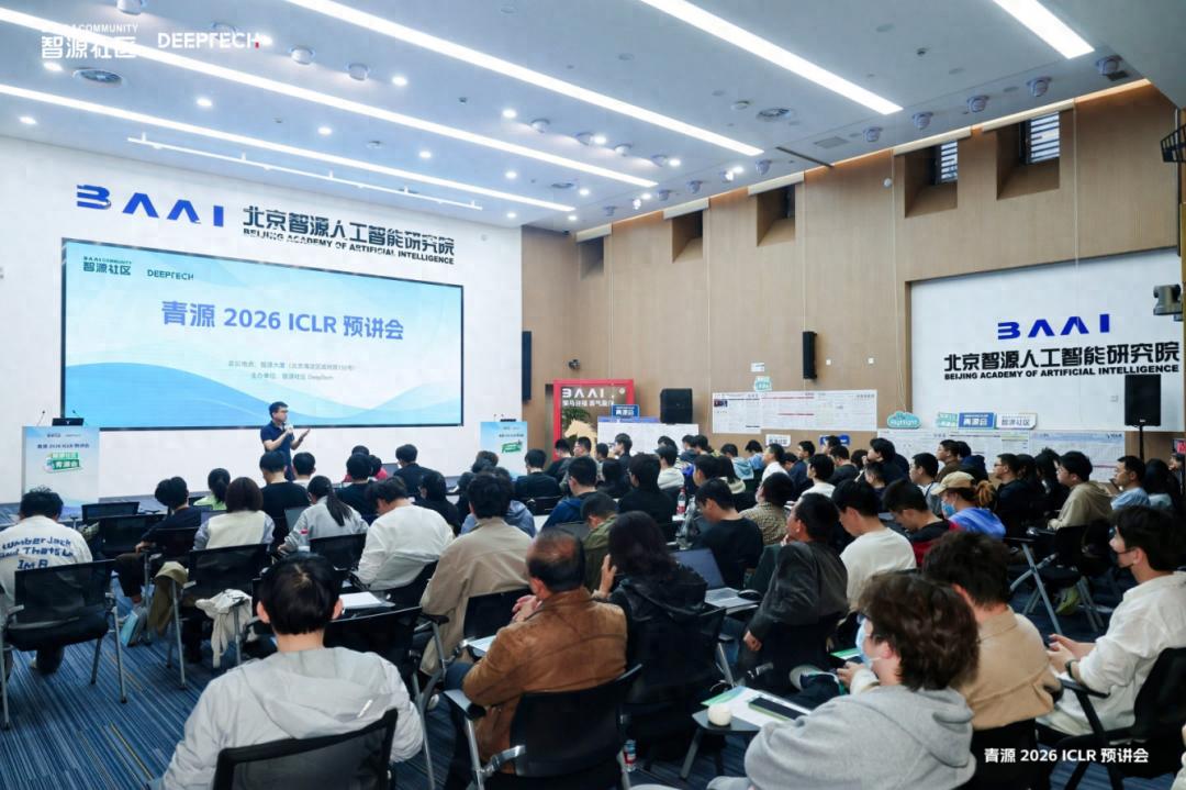 4 月 14 日下午,由智源社区、DeepTech 联合举办的 ICLR 2026 预讲会在北京智源大厦圆满举行。作为机器学习领域最具影响力的国际顶会之一,ICLR 录用论文往往代表着该领域最前沿的研究方向和技术突破。