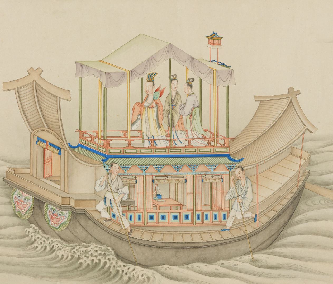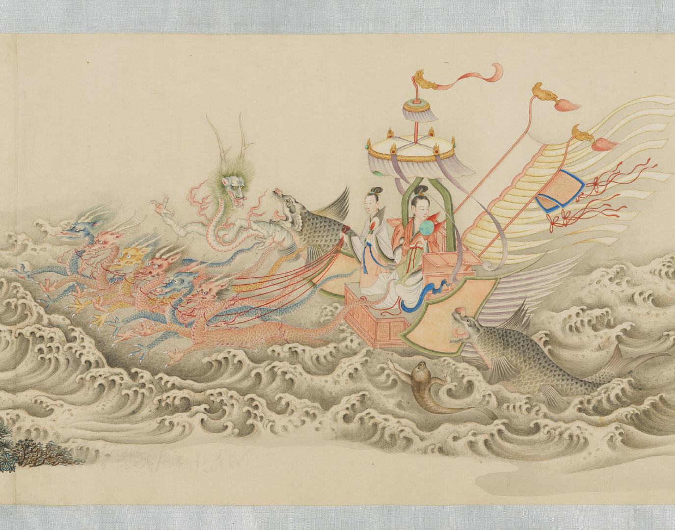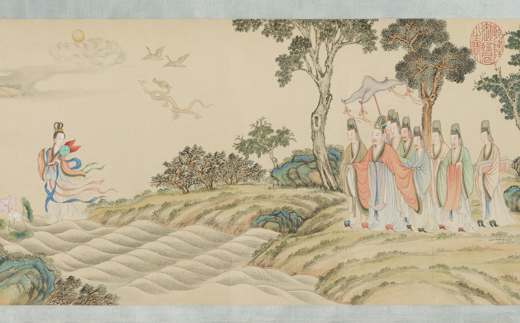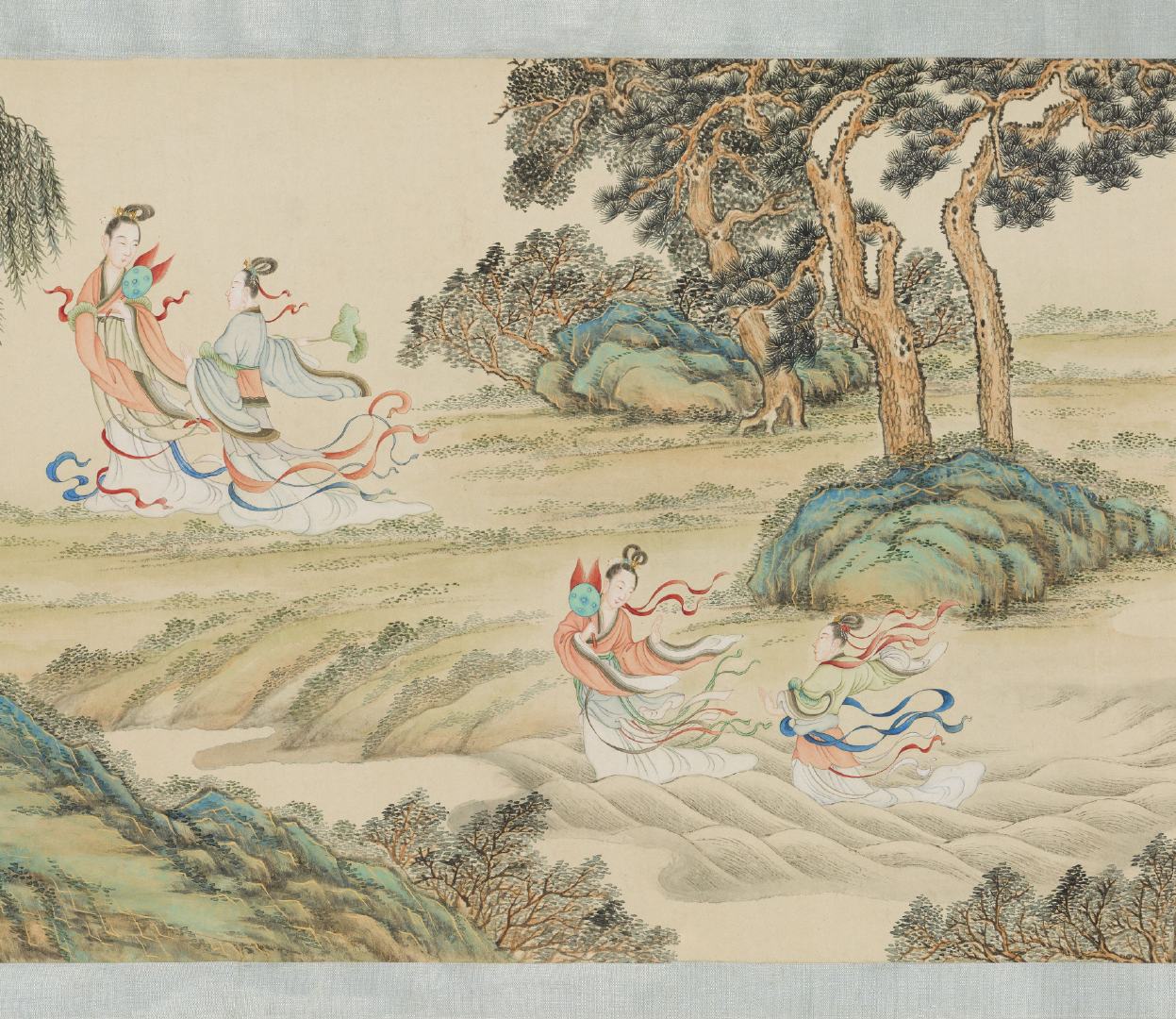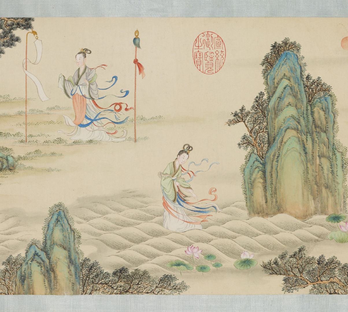 《摹顾恺之洛神图》卷由清代丁观鹏奉敕临摹。