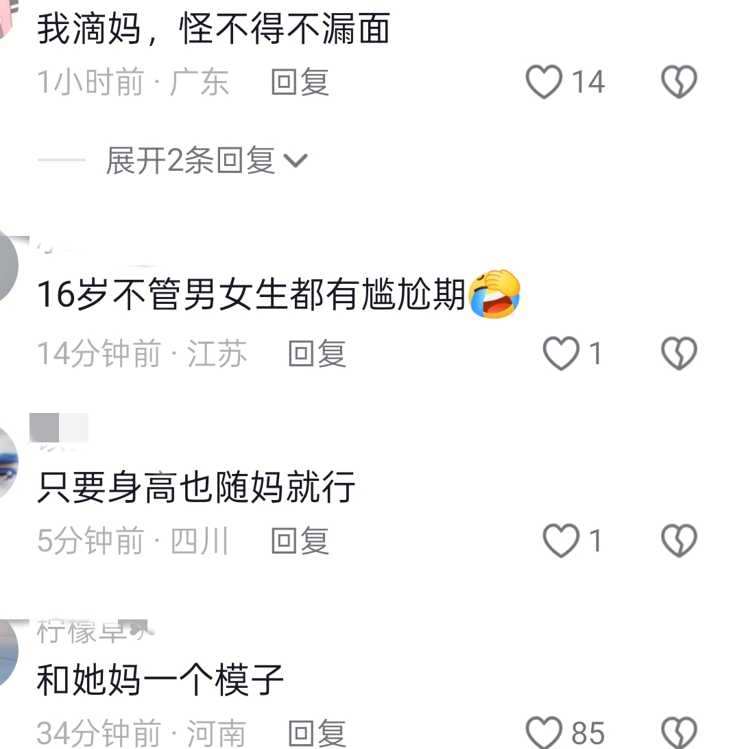 针对“长残”的吐槽,也有很多网友持理性看法。大家觉得,Kimi如今才16岁,还处于青春期的发育阶段,五官、脸型和气质都还没有完全定型,现在的长相只是成长过程中的过渡状态,远没到最终定型的样子,贸然用“长残”定义太过片面。