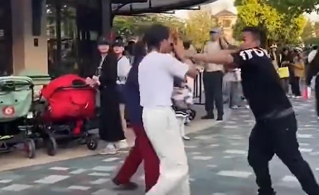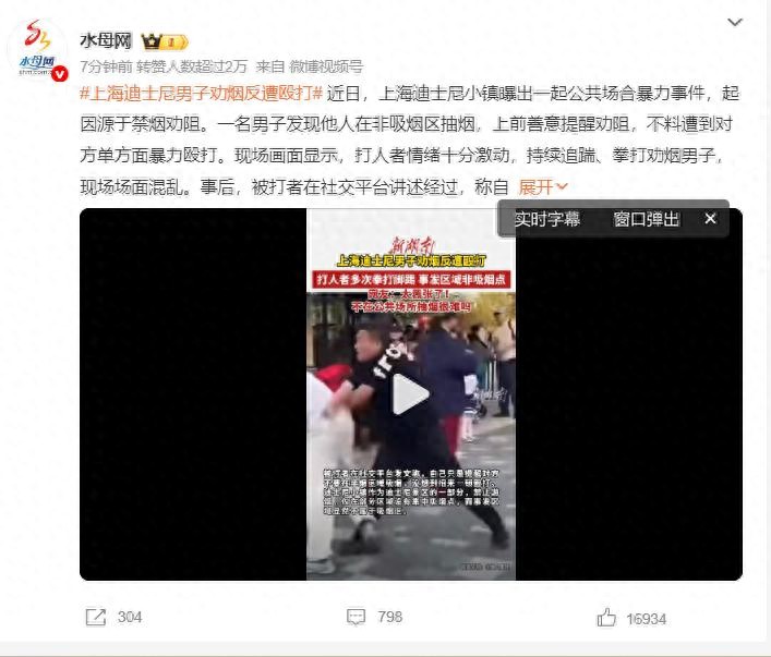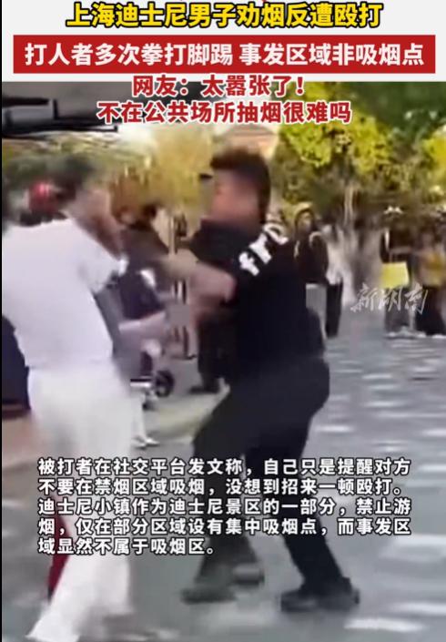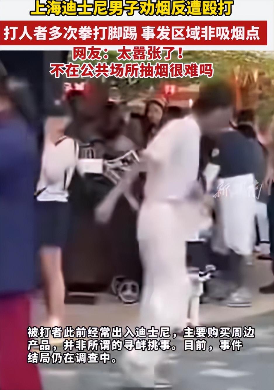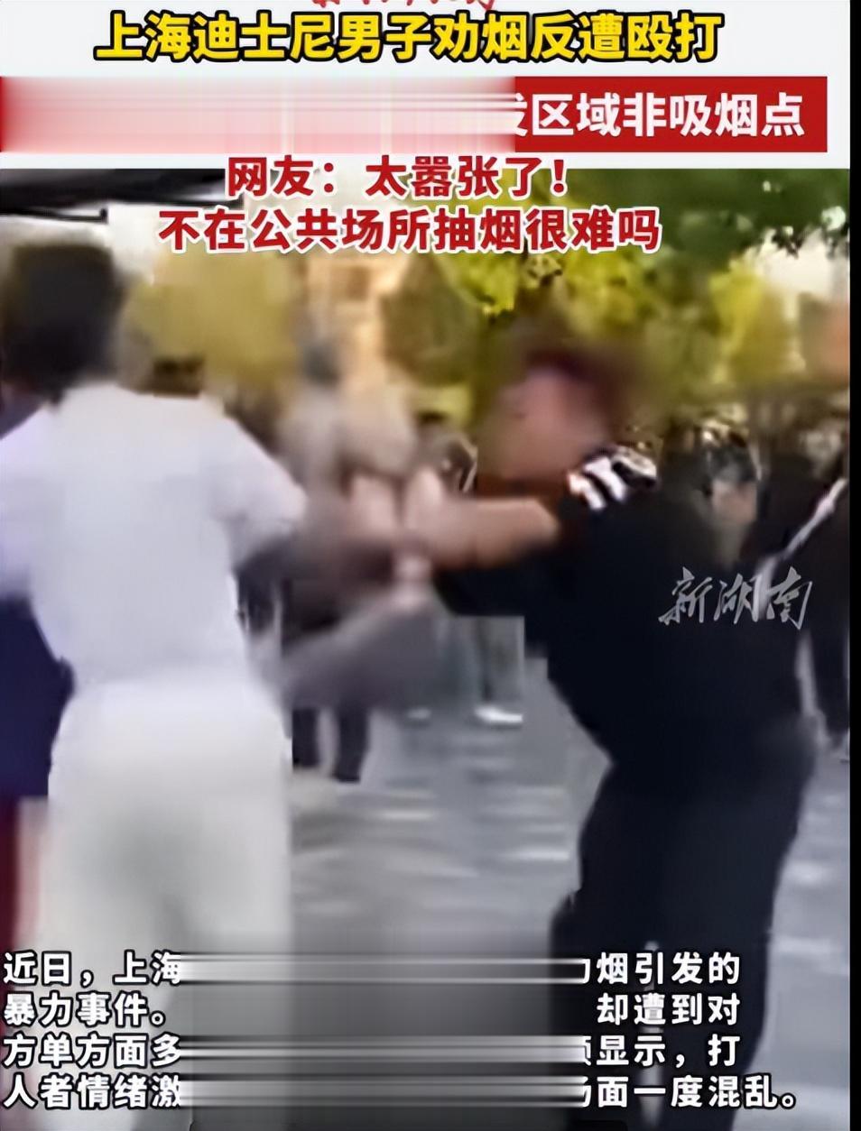 上海迪士尼男子劝烟反遭殴打:视频流出 打人者正脸曝光,警方介入。