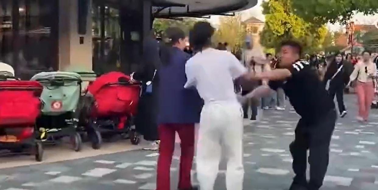 那个画面,你根本不敢相信是在迪士尼,旁边有孩子吓得直往大人怀里钻。一个穿迪士尼制服的女工作人员跑过来想拉架,根本拉不住,打人的那个已经完全红了眼。