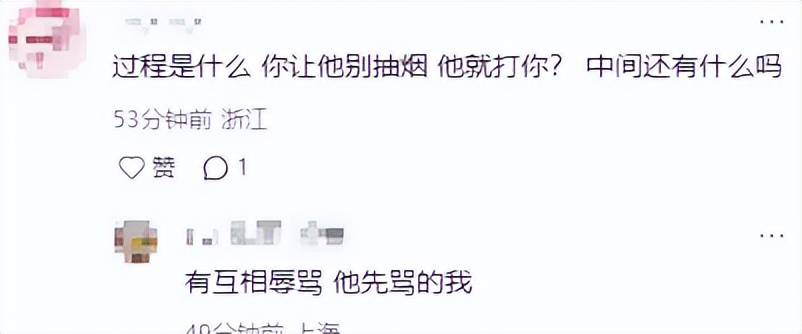 “抽烟也要有点素质好不好。”“这种人已经不单单是吸烟问题了,打人扰乱社会治安,必须拘留!”“不在吸烟区域吸烟,人家劝阻得没毛病吧?迪士尼这么多小孩,也不注意一下?真是自私自利!”