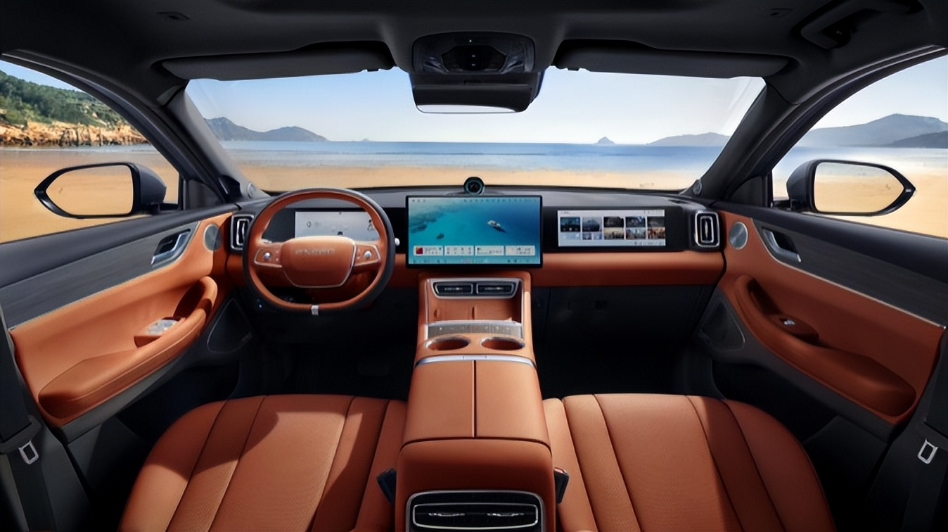 进入车内,两款车的座舱理念同样不同。星途ET5采用三联屏布局,主驾仪表、中控屏、副驾娱乐屏各司其职。主驾专注驾驶信息,副驾乘客可以独立追剧或听歌,互不干扰。搭载的高通8255芯片确保了多任务处理流畅,融合AI大模型的语音系统也让交互更加自然。