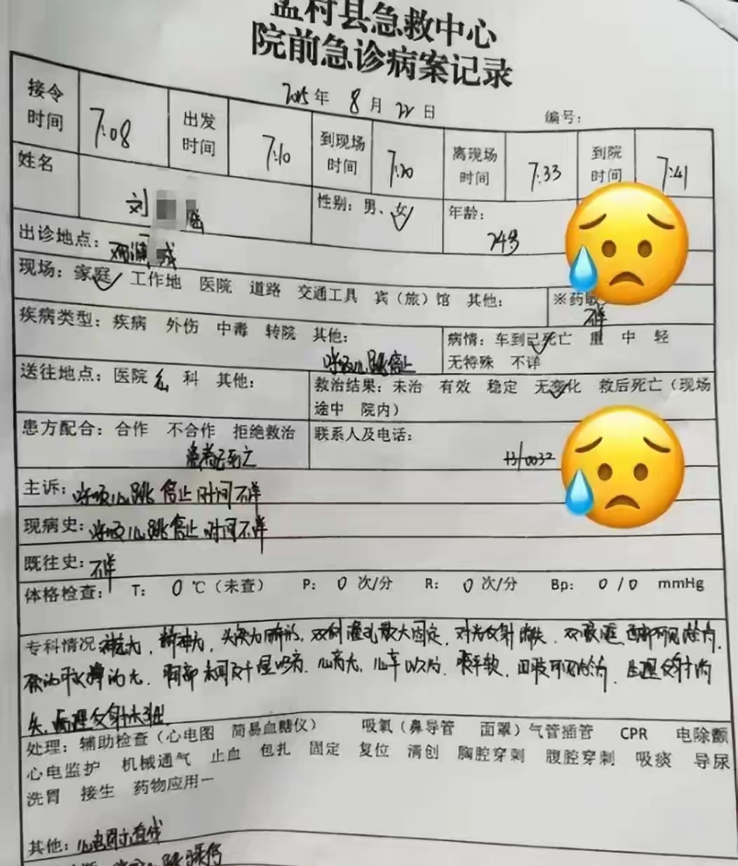 早上7点多,金昊发现刘某某没气了,赶紧拨打了120电话,又给父母打了电话。