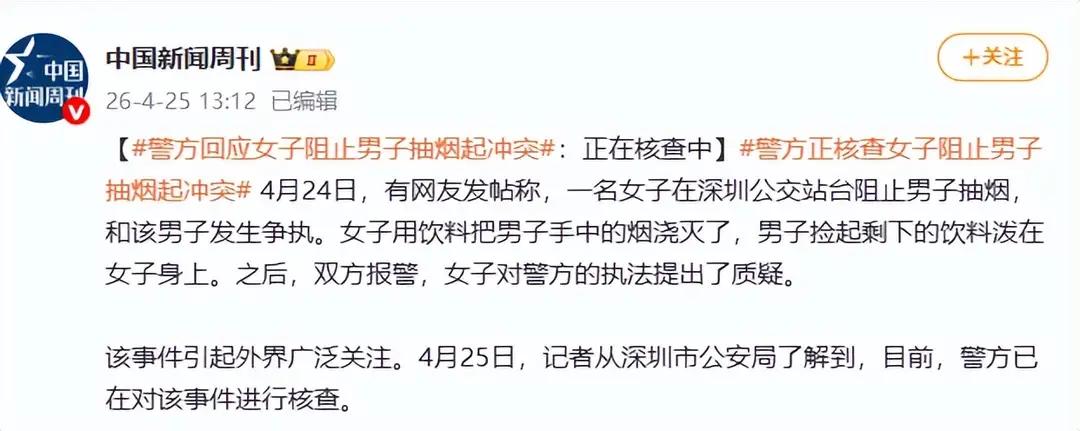 界面快讯-2026-04-25-深圳公交站台吸烟男子被罚款
