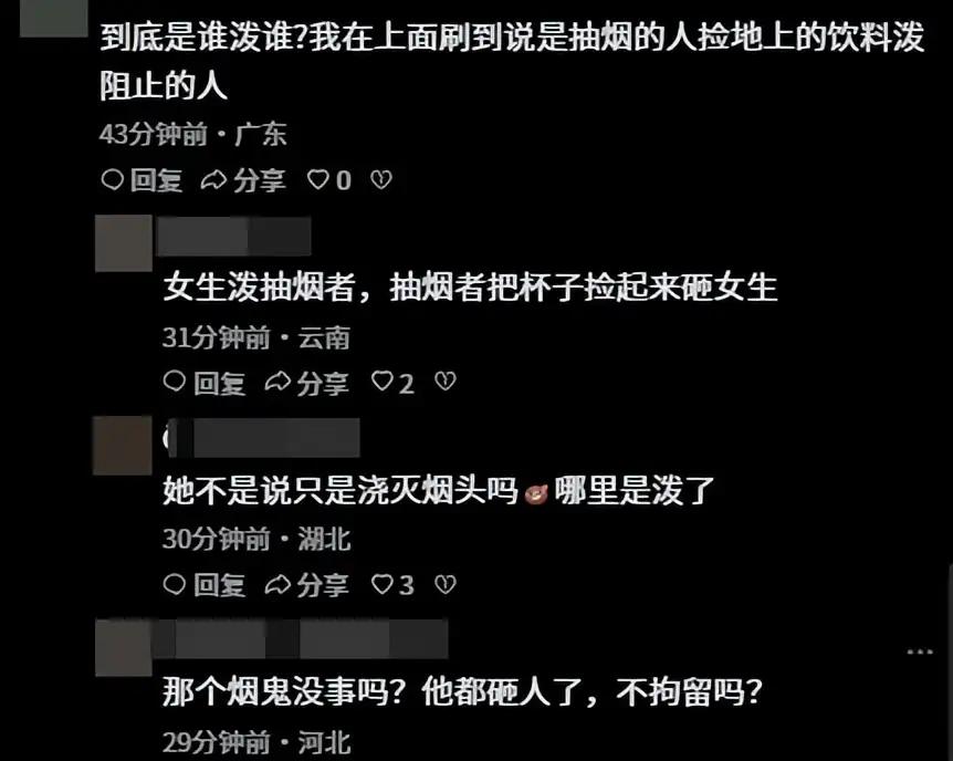看着对方手里还在燃烧、持续飘散有害物质的香烟,刺鼻烟味不断侵扰身边人,她一时情急,拿起随身携带的果汁饮料,直接泼向陈某持烟的右手,当场浇灭了烟头,随后将一次性塑料果汁杯丢弃在路面。