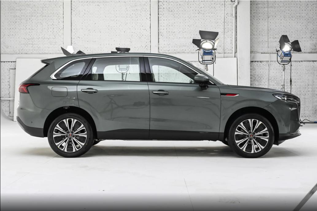 车身侧面线条舒展流畅,大五座SUV的体量感很足,腰线利落不臃肿,大尺寸铝合金轮毂一装,气场一下就上来了。车尾设计简约大方,凤翎样式的尾灯点亮特别好看,双Y灯带很有特色,跟车头龙凤呼应,整体宽敦敦的,看着稳当又耐看,家用、商务都撑得住场面。
