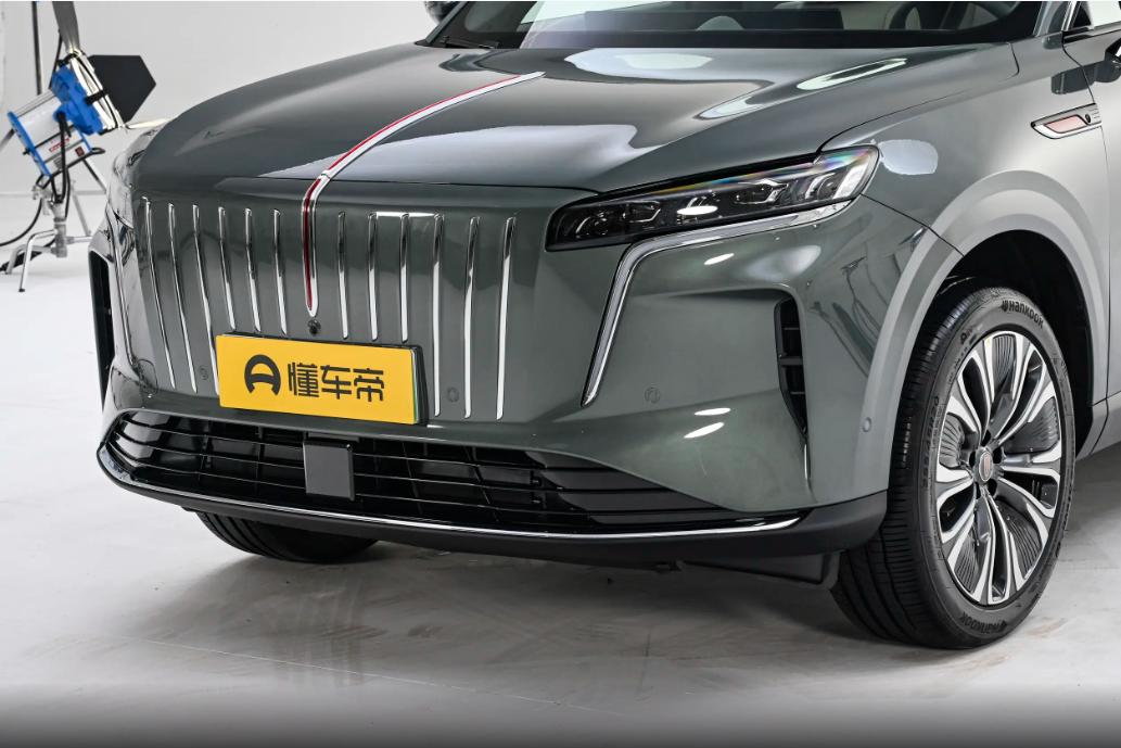 在外观设计方面,红旗HS6 PHEV这外观,一眼就是大气稳重的家用范儿,还带着红旗品牌的中式豪华感,开出去既有面子又不浮夸。前脸是经典的高山飞瀑封闭式格栅,12根镀铬竖条看着规整又有气场,中间那条能点亮的红标特别提气,解锁瞬间仪式感直接拉满,搭配龙睛LED大灯,眼神犀利又精神,晚上辨识度拉满。细节上加入了银色镀铬饰件进行装饰,从而提升了车辆的精致感。
